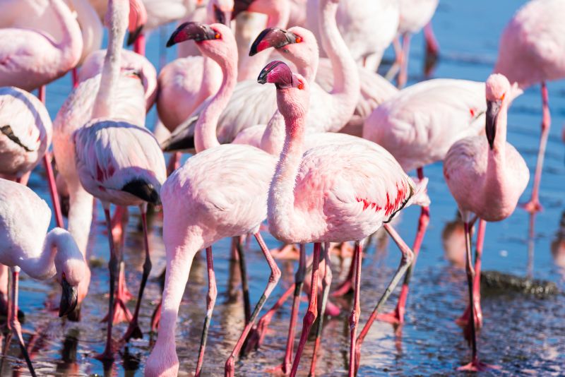 l’extrémité du lagon généralement peuplé de flamands roses et de pélicans,